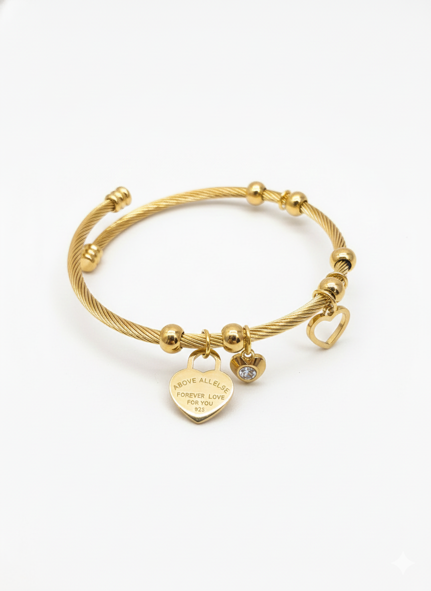 Features a polished heart pendant engraved with “Above All Else – Forever Love For You”